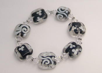 All the jewelry and lampwork beads on this site are handcrafted by me using only the finest quality materials and a variety of soft glass, Effetre, Bullseye, Czech, and Lausha. All jewelry is made with Sterling silver unless otherwise noted. Many pieces are limited editions due to the availability of the beads. Custom orders are welcome. If you need a different size or would like to see different beads on a piece, just ask (nmfisher@pacbell.net)